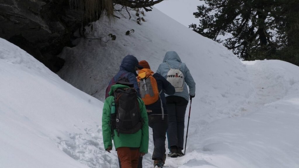 The trek trails are vibrant and beautiful with wildflowers blooming and lush green forests. It usually has pleasant weather with clear skies throughout the year, while in winters it gives you a beautiful experience of snow. Winters here are from December to February, and it arrives with an abundance of snow, creating mystical charm in the scenery. You can witness Nag Tibba at its peak beauty during these months. The entire region transforms into a wonderland, with snow-laden trees and trails whitewashed with snow.